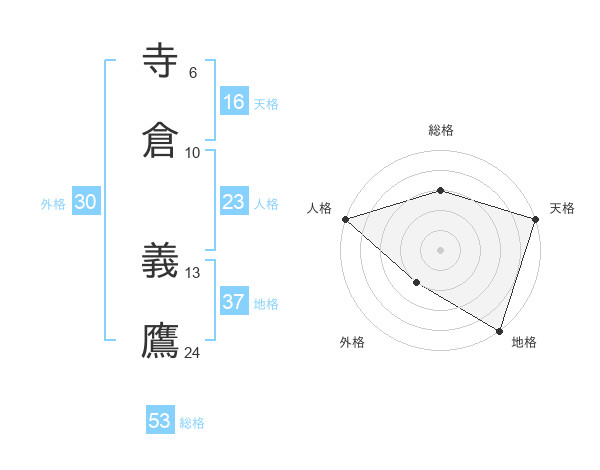 寺倉 義鷹さんを姓名の画数から五運を鑑定