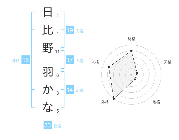 日比野 羽かなさんを姓名の画数から五運を鑑定