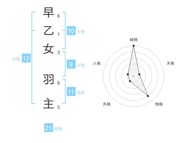 早乙女 羽主さんの総格は21画の5点