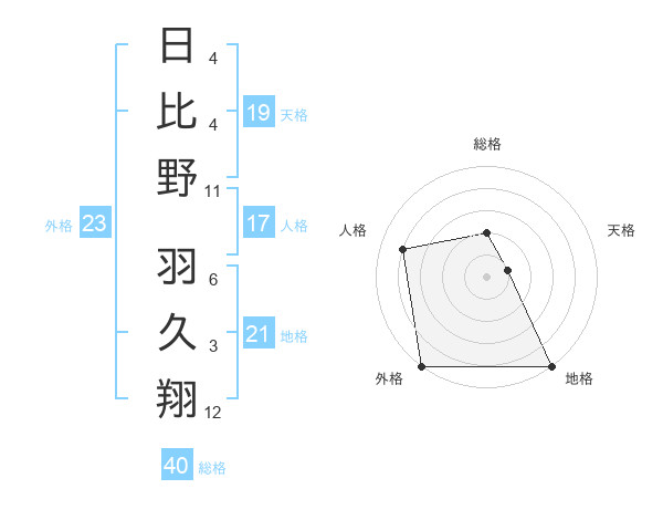 日比野 羽久翔さんを姓名の画数から五運を鑑定