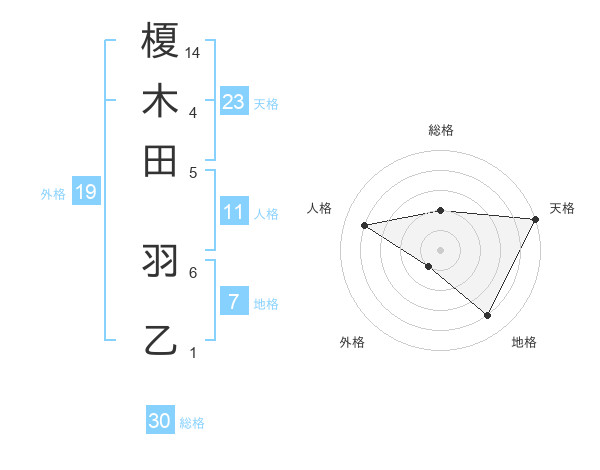 榎木田 羽乙さんの天格は23画の5点!
