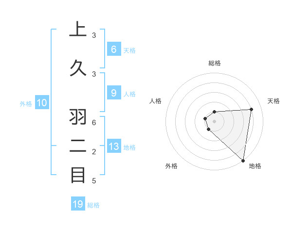 上久 羽二目さんを姓名の画数から五運を鑑定
