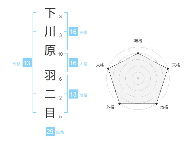 下川原 羽二目さんの総格は29画の4点!