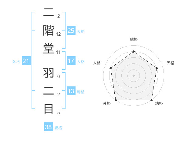 二階堂 羽二目さんを姓名の画数から五運を鑑定