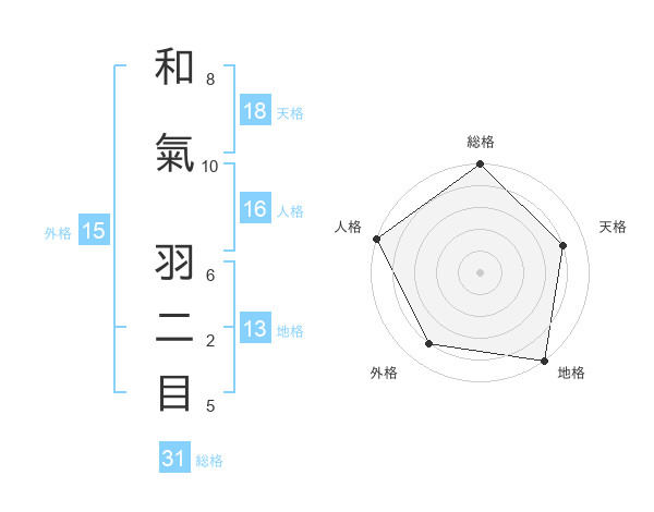 和氣 羽二目さんを姓名の画数から五運を鑑定