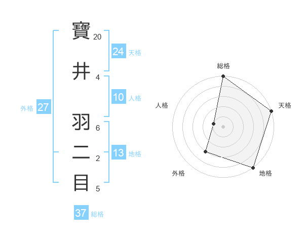 寶井 羽二目さんを姓名の画数から五運を鑑定