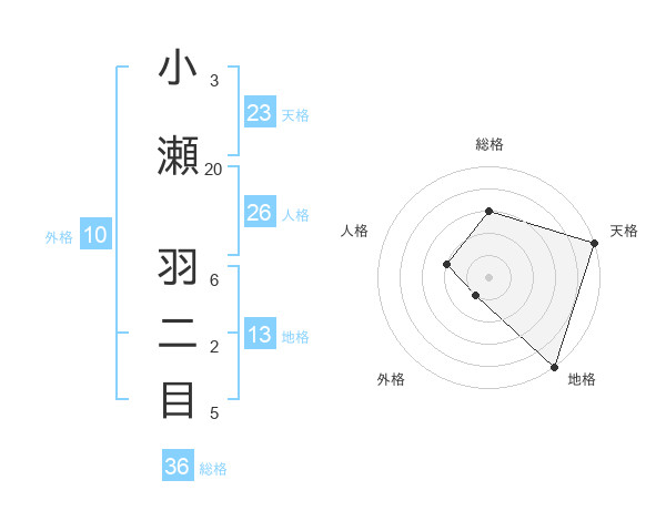 小瀬 羽二目さんを姓名の画数から五運を鑑定