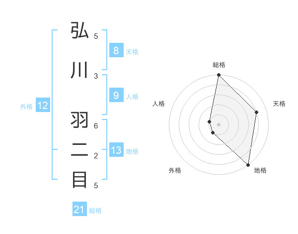弘川 羽二目さんを姓名の画数から五運を鑑定