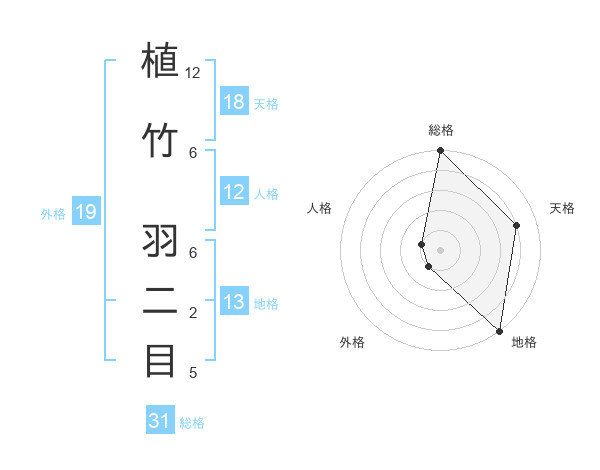 植竹 羽二目さんを姓名の画数から五運を鑑定