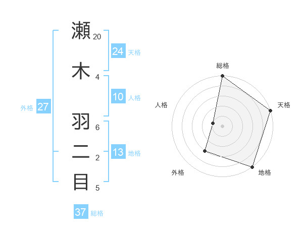 瀬木 羽二目さんの総格は37画の5点!