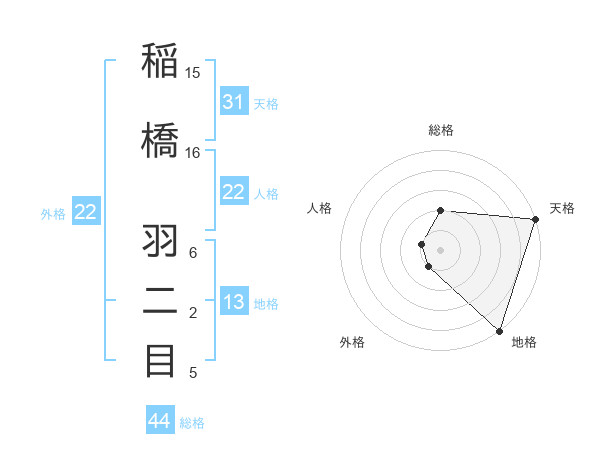 稲橋 羽二目さんを姓名の画数から五運を鑑定