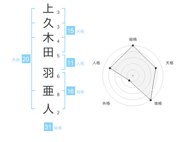 上久木田 羽亜人さんの総格は31画の5点!