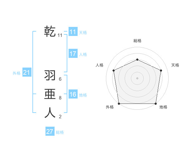 乾 羽亜人さんの外格は21画の5点!