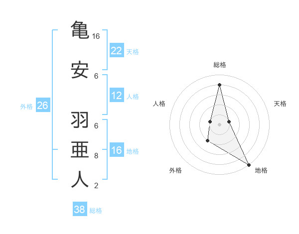 亀安 羽亜人さんを姓名の画数から五運を鑑定
