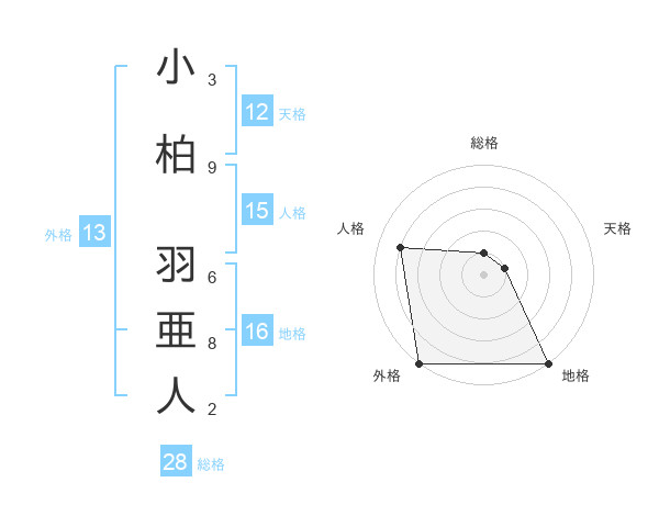 小柏 羽亜人さんを姓名の画数から五運を鑑定