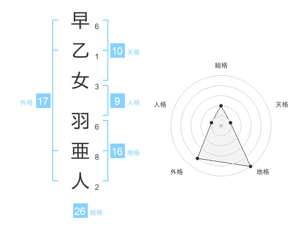 早乙女 羽亜人さんを姓名の画数から五運を鑑定