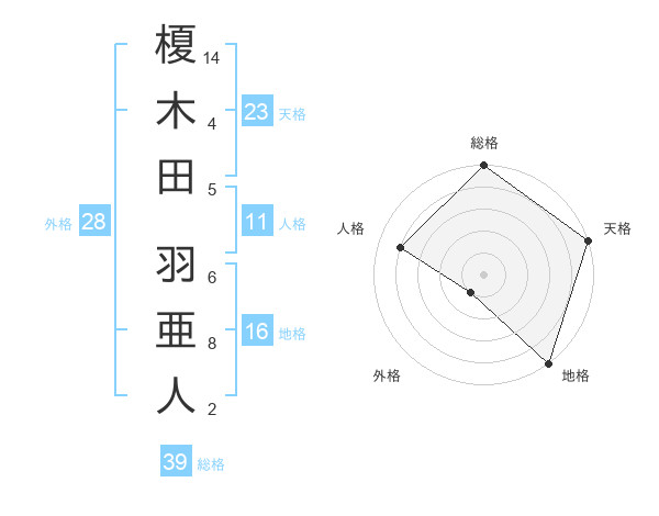 榎木田 羽亜人さんの天格は23画の5点!