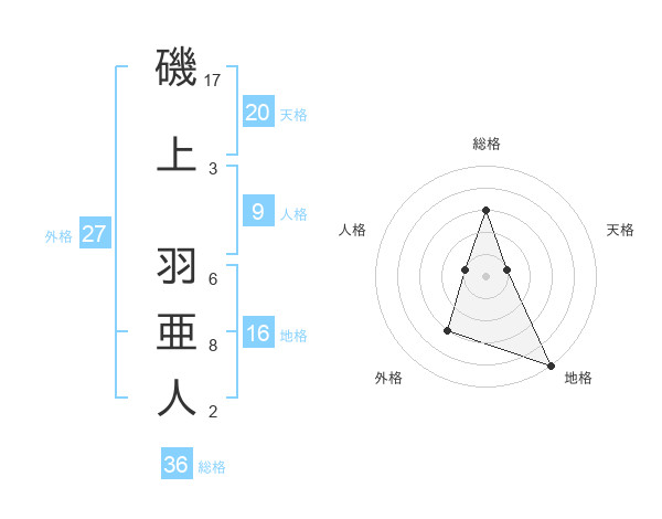 磯上 羽亜人さんを姓名の画数から五運を鑑定