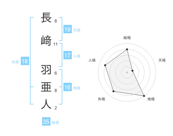 長﨑 羽亜人さんの総格は35画の4点!