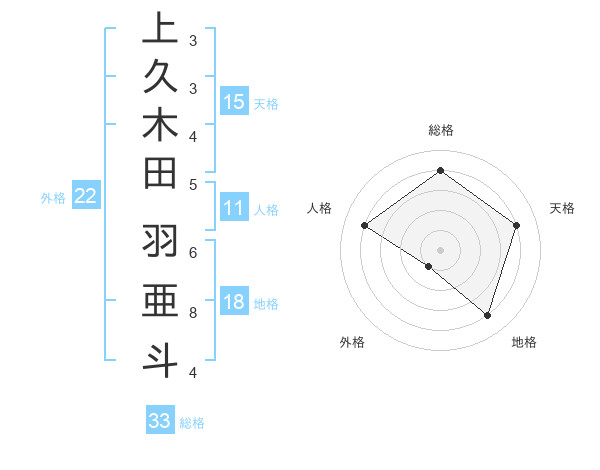 上久木田 羽亜斗さんを姓名の画数から五運を鑑定