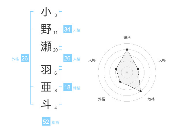 小野瀬 羽亜斗さんを姓名の画数から五運を鑑定