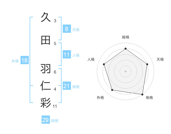 久田 羽仁彩さんを姓名の画数から五運を鑑定