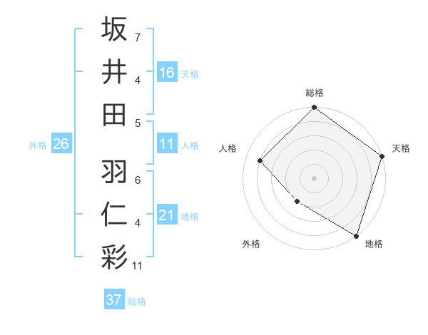 坂井田 羽仁彩さんを姓名の画数から五運を鑑定