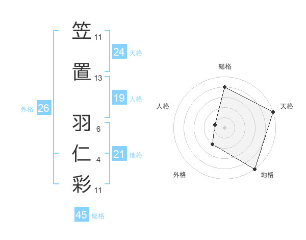 笠置 羽仁彩さんを姓名の画数から五運を鑑定