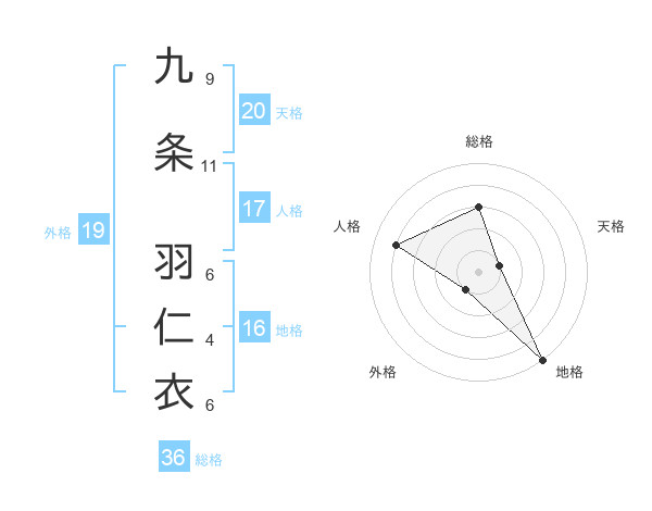 九条 羽仁衣さんの天格は20画の1点!