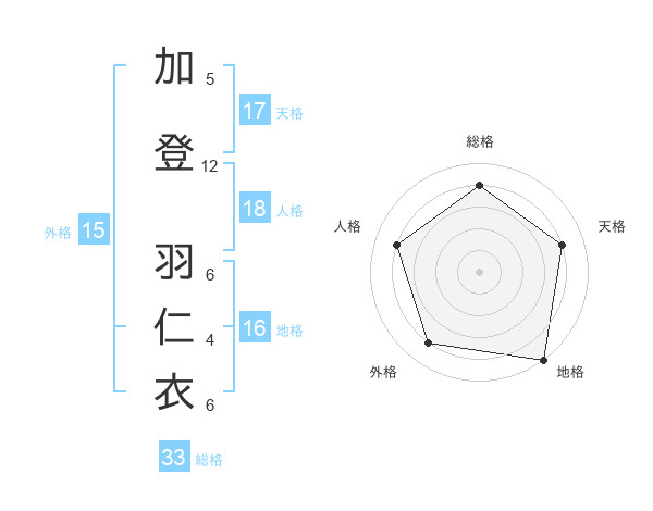 加登 羽仁衣さんを姓名の画数から五運を鑑定