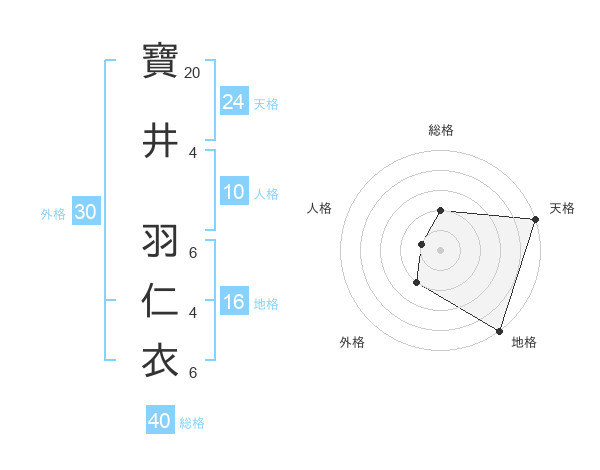 寶井 羽仁衣さんを姓名の画数から五運を鑑定