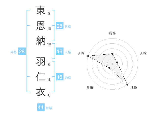 東恩納 羽仁衣さんを姓名の画数から五運を鑑定