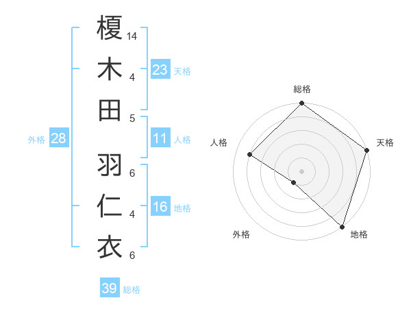 榎木田 羽仁衣さんの天格は23画の5点!