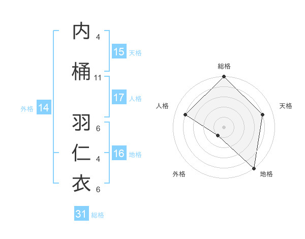 内桶 羽仁衣さんを姓名の画数から五運を鑑定