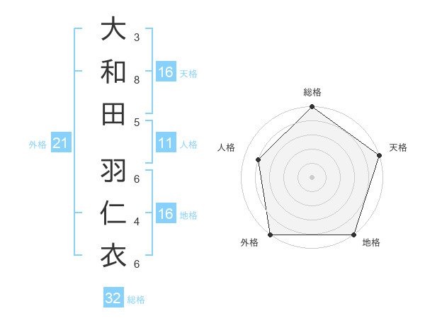 大和田 羽仁衣さんを姓名の画数から五運を鑑定