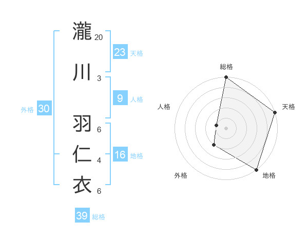 瀧川 羽仁衣さんを姓名の画数から五運を鑑定