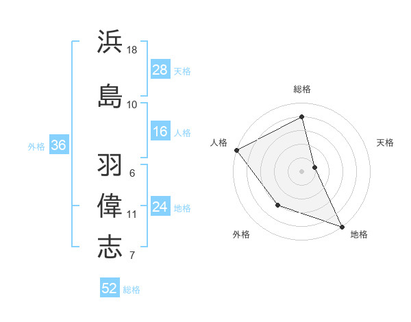 浜島 羽偉志さんを姓名の画数から五運を鑑定