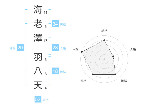 海老澤 羽八天さんを姓名の画数から五運を鑑定