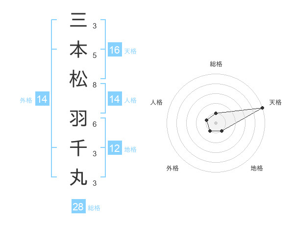 三本松 羽千丸さんを姓名の画数から五運を鑑定