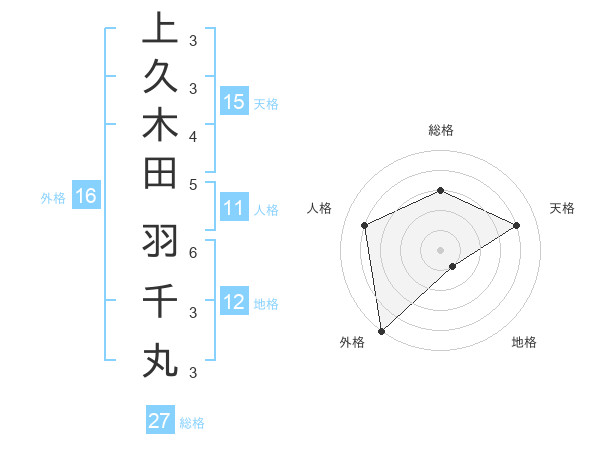 上久木田 羽千丸さんの総格は27画の3点!