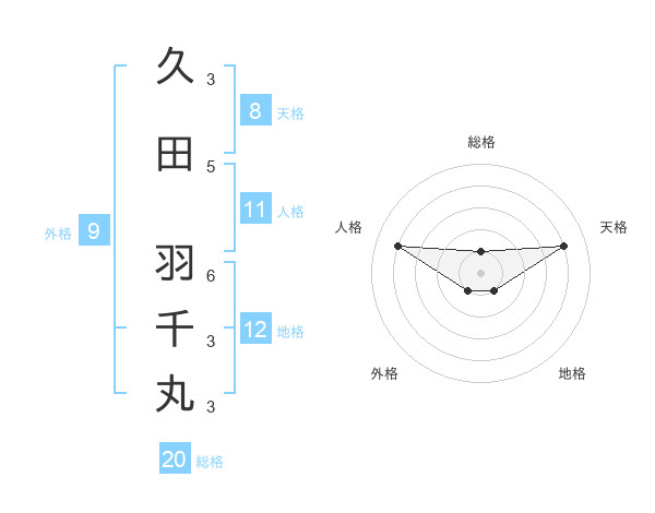 久田 羽千丸さんを姓名の画数から五運を鑑定