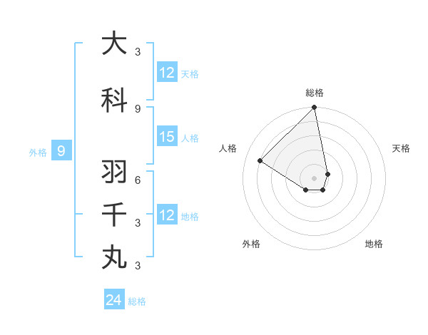 大科 羽千丸さんを姓名の画数から五運を鑑定