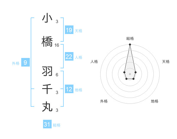 小橋 羽千丸さんを姓名の画数から五運を鑑定