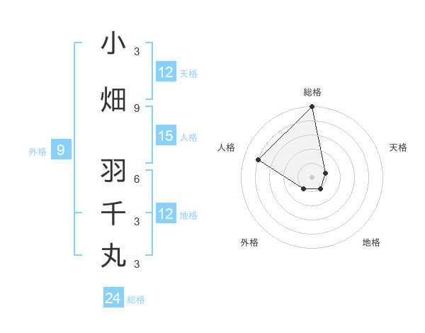 小畑 羽千丸さんの総格は24画の5点!