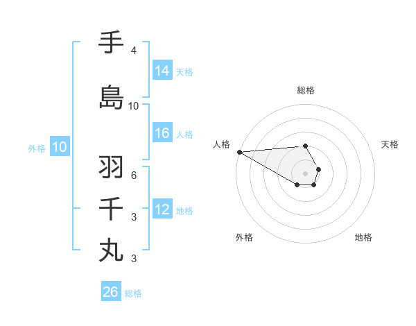 手島 羽千丸さんの総格は26画の2点!