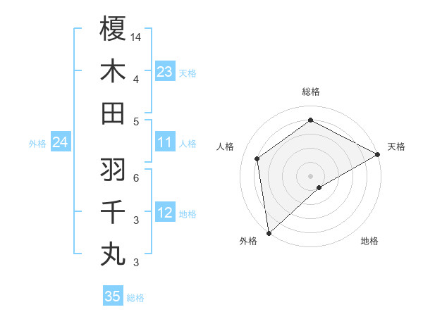 榎木田 羽千丸さんの総格は35画の4点!