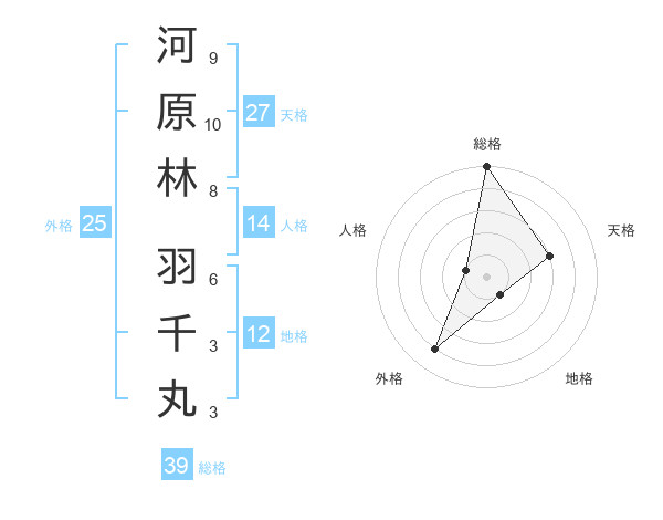 河原林 羽千丸さんを姓名の画数から五運を鑑定