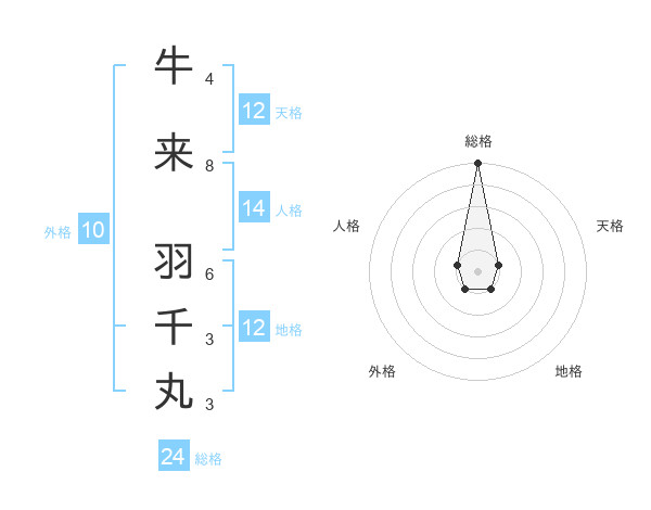牛来 羽千丸さんの総格は24画の5点