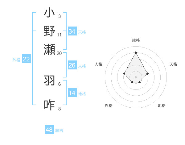 小野瀬 羽咋さんを姓名の画数から五運を鑑定