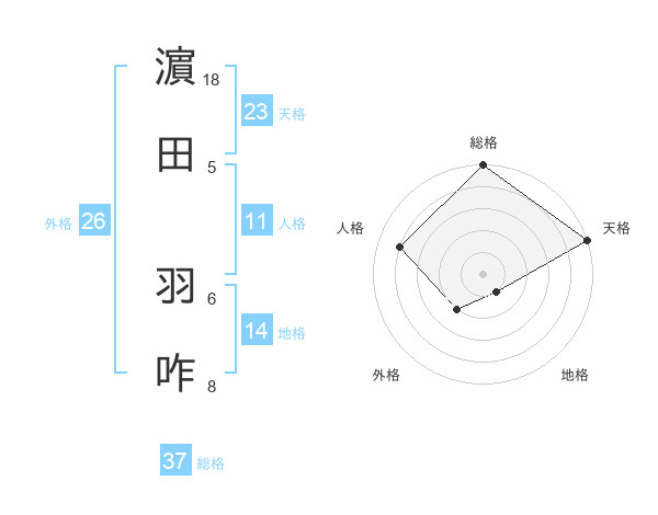 濵田 羽咋さんを姓名の画数から五運を鑑定
